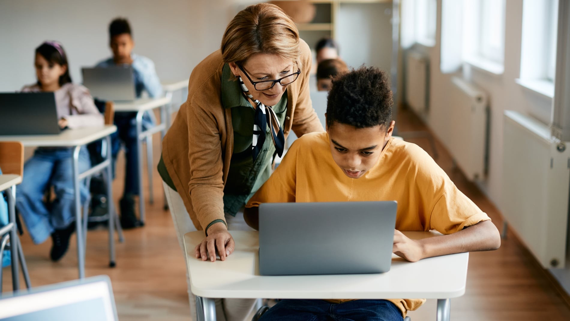Auxiliar de conversación española dando clase | Envato