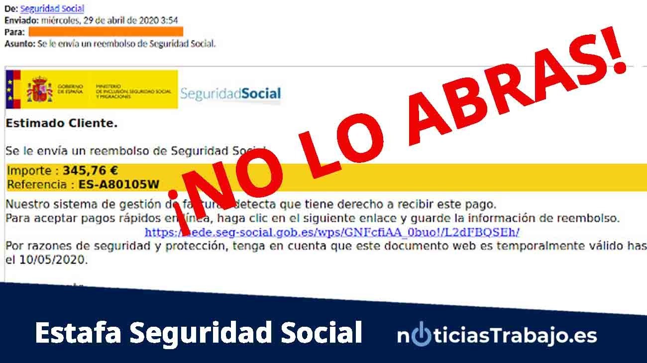 Nueva estafa que usa de gancho los pagos y las cuotas a la Seguridad Social. Los ciberdelincuentes quieren quedarse con tus datos y tu dinero usando el correo electrónico. Piden el reembolso de una cantidad, por lo que exigen que pinches un enlace que te redirecciona a una plataforma de pago con tarjeta.
