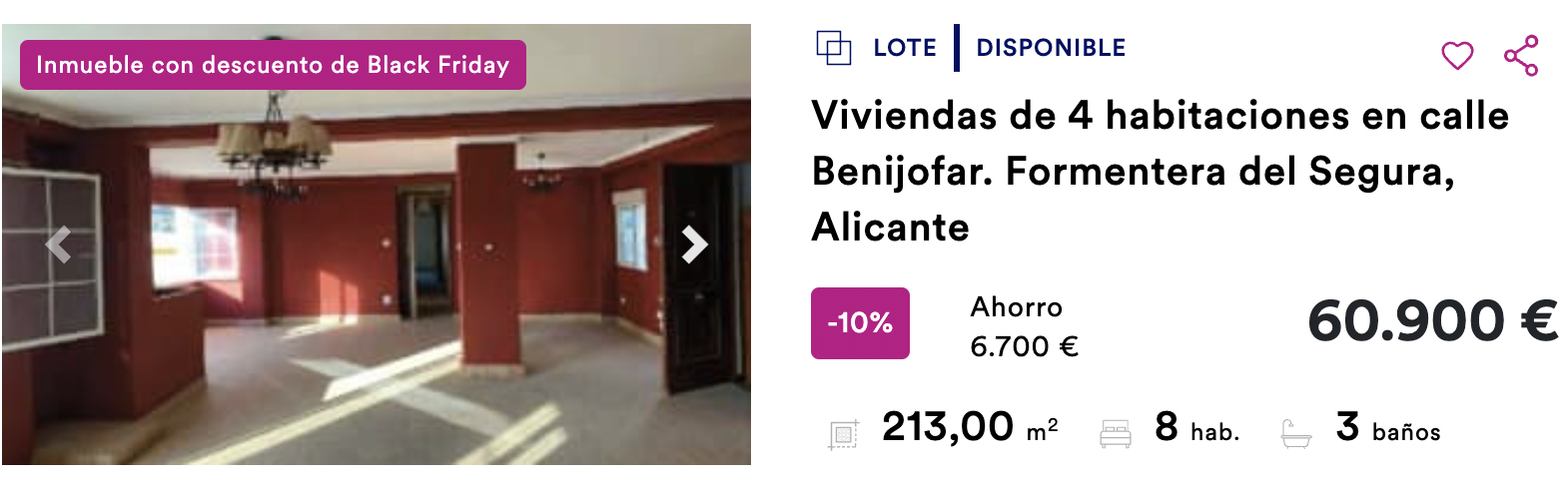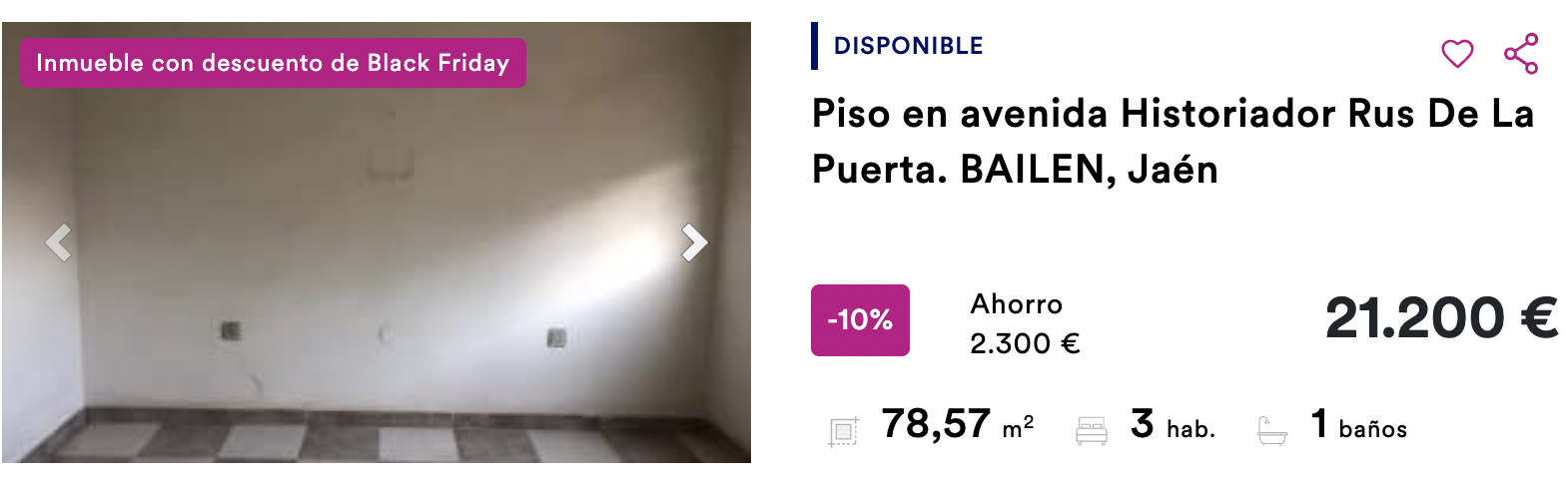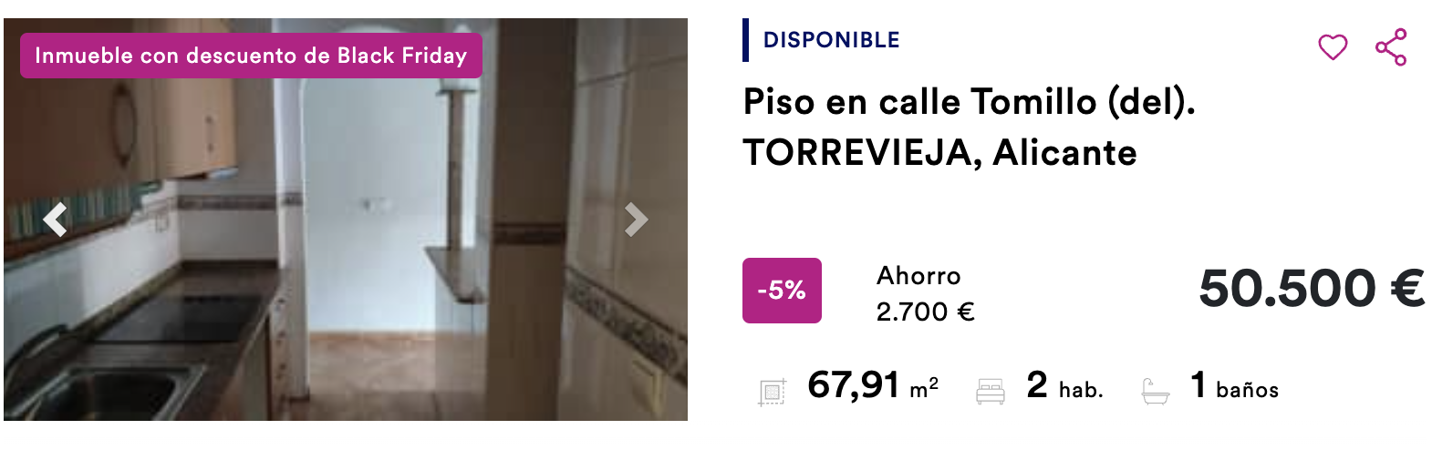 Ahora, con el motivo del evento del año, el Black Friday, BBVA a través del portal Haya ha puesto la promoción House Friday con la que ofrece descuentos especiales de hasta el 45 %. La mayoría de estas viviendas provienen de embargos de antiguos propietarios que no pudieron pagar la hipoteca. En estos casos el activo pasa a propiedad del banco y este procede a su venta.