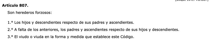 Así lo recoge el artículo 807 del Código Civil, que identifica como herederos forzosos a los hijos y descendientes, y en su defecto a los padres y ascendientes, además del cónyuge viudo. De este modo, la ley fija un orden claro entre los familiares con derecho a una parte mínima de la herencia.