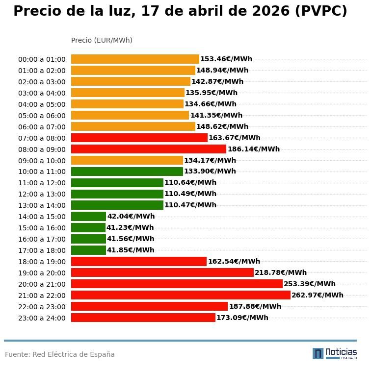 Precio de la luz por horas viernes 17 de abril (PVPC)