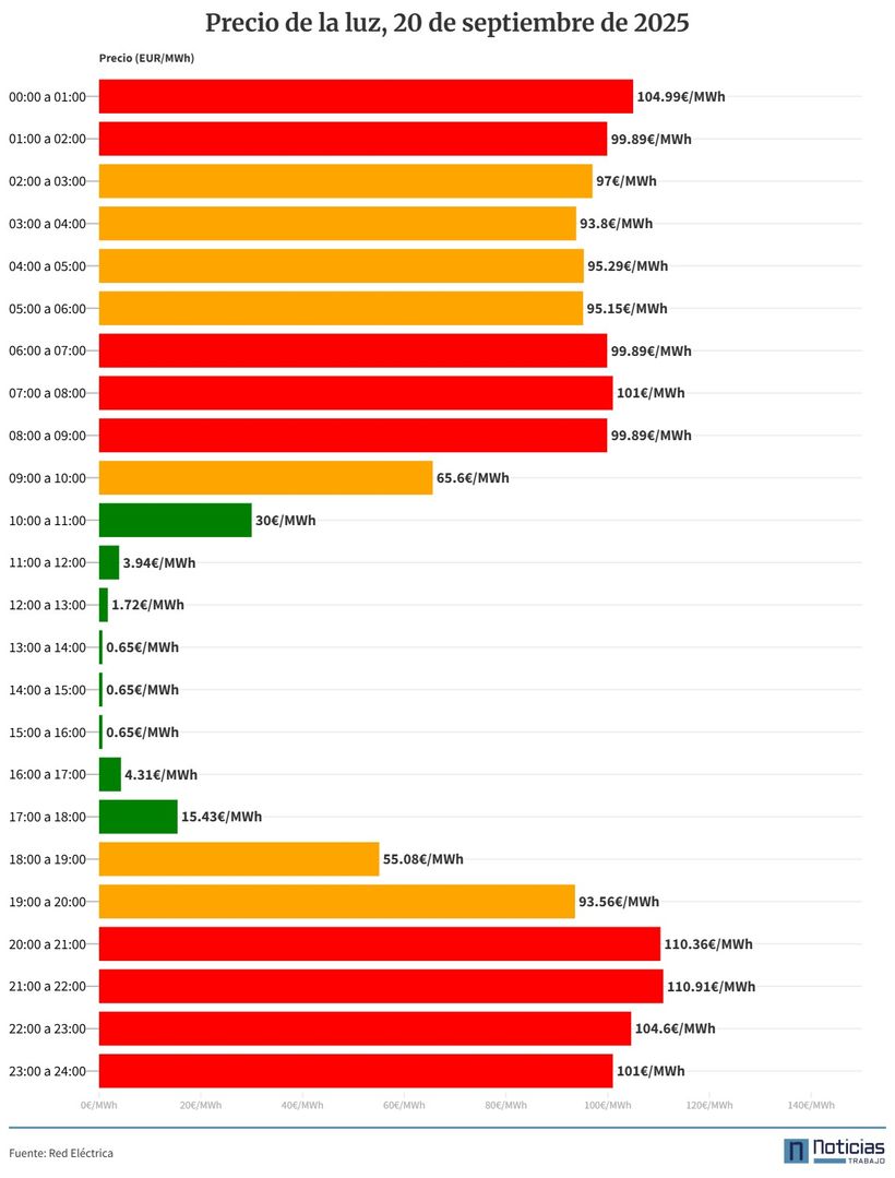 ¿A qué hora es más barata la luz el 20 de septiembre?