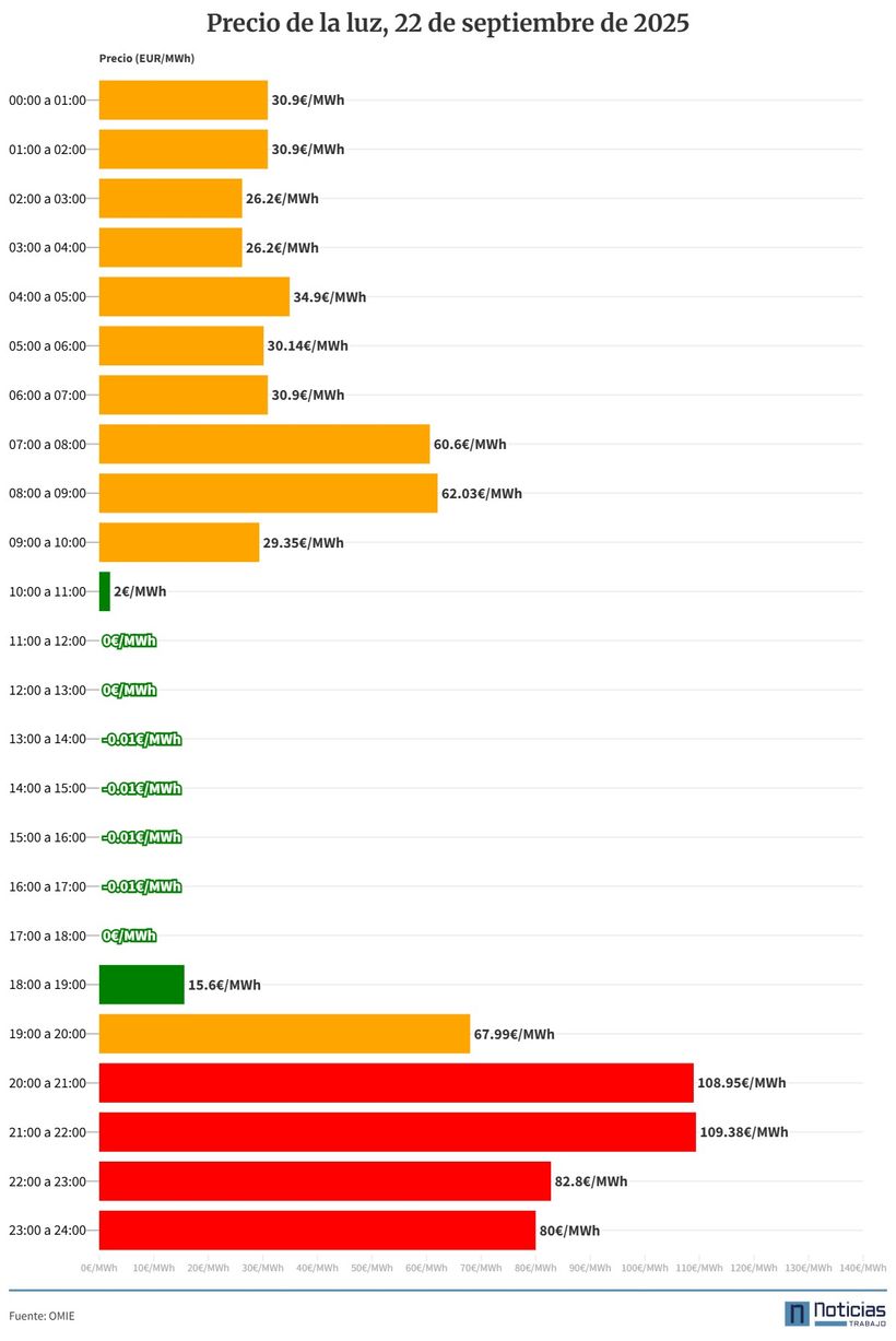 ¿A qué hora es más barata la luz el 22 de septiembre?
