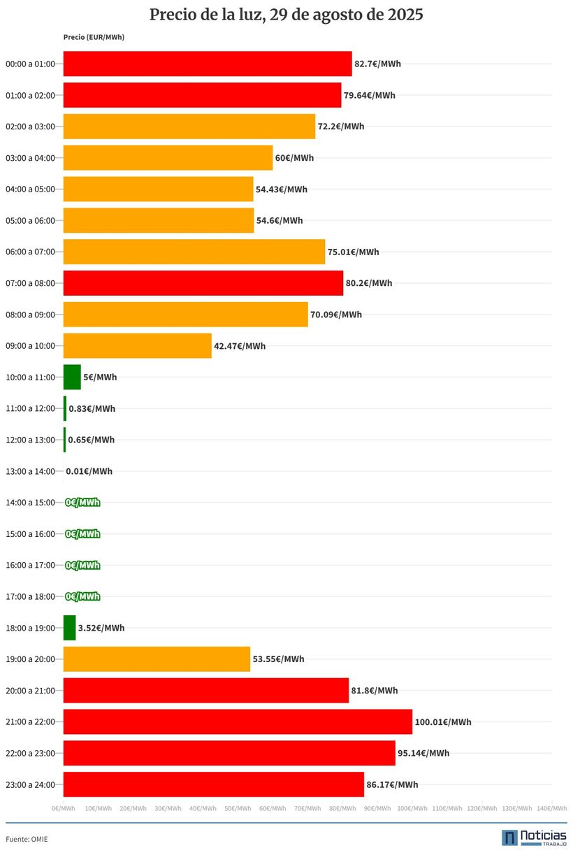 ¿A qué hora es el precio de la luz más barato este viernes 29 de agosto?