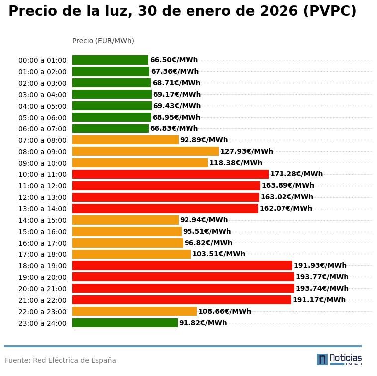 Precio de la luz por horas, viernes 30 de enero (PVPC)
