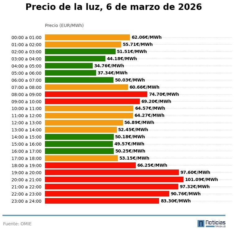 Precio de la luz por horas, viernes 6 de marzo