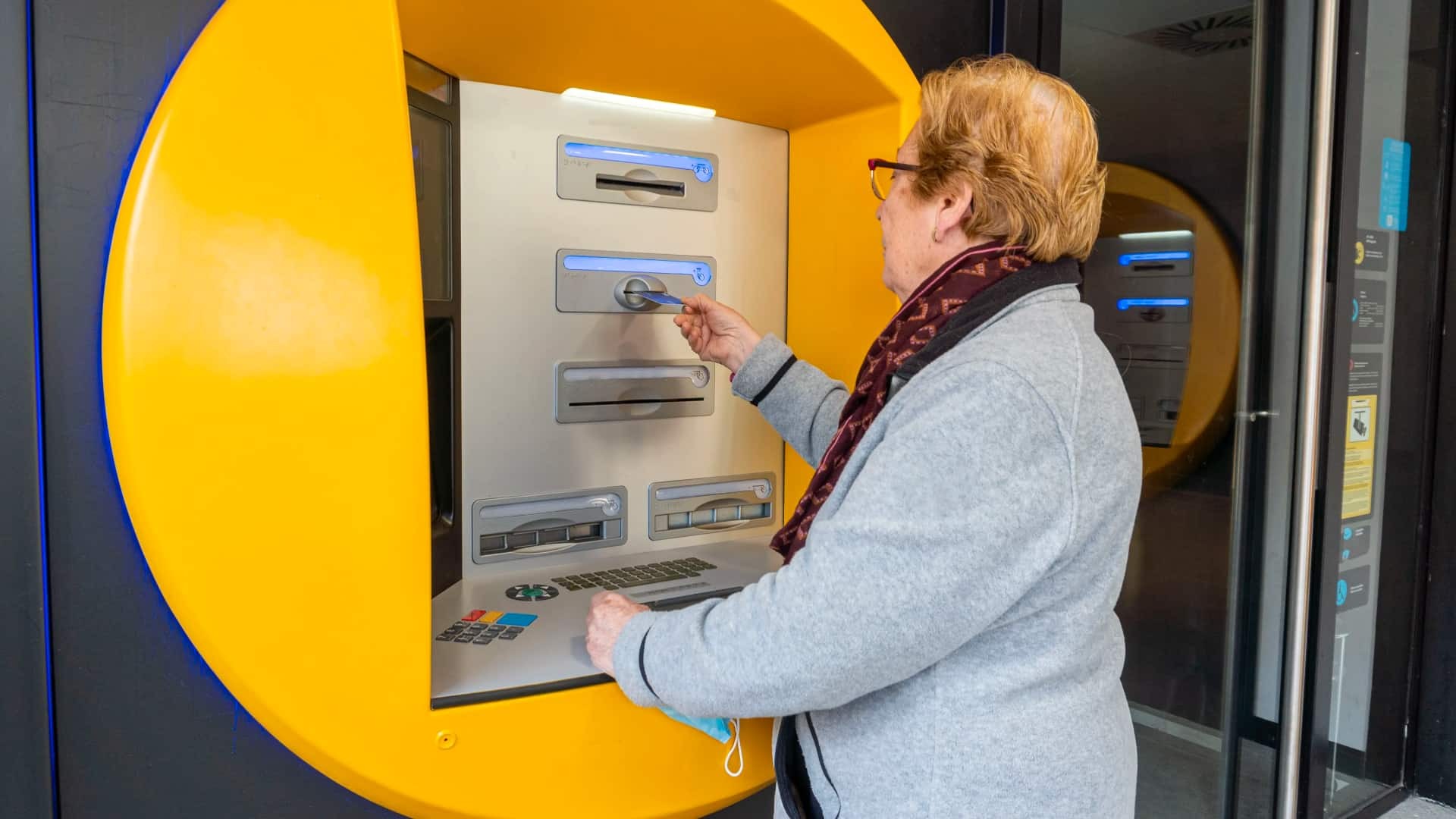 Jubilada sacando el dinero de su pensión del banco |Seguridad Social