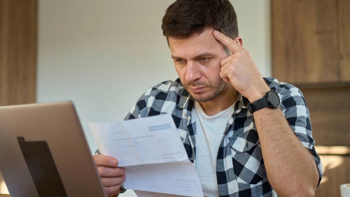 Un hombre preocupado revisando documentos
