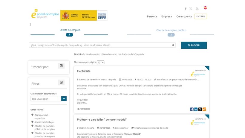 Para enviar el currículum a una de las ofertas de empleo publicadas por el SEPE, lo primero es acceder a su portal ‘Empléate’ y usar los filtros para seleccionar el tipo de jornada laboral, de contrato e incluso la experiencia previa. Una vez que se haya completado este primer paso, habrá que pulsar en el nombre de la vacante y se desplegarán las condiciones laborales.