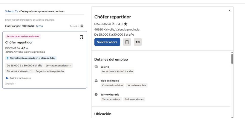El puesto a cubrir sería en la localidad de Xirivella, en Valencia.