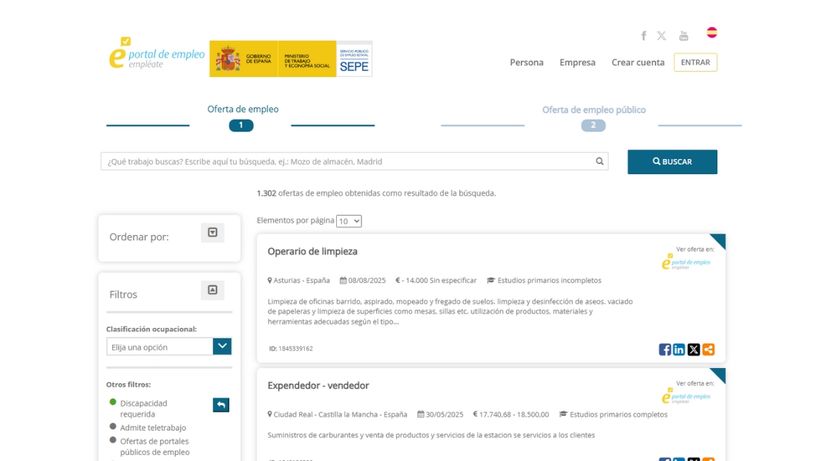 Todas las vacantes están en la web ‘Empléate’ del SEPE donde habrá clicar en la opción de ‘Discapacidad requerida’.