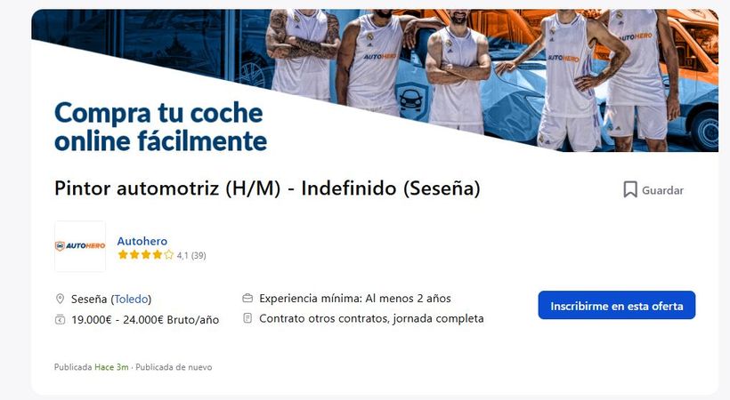 La empresa Autohero publica este puesto de trabajo en Seseña (Toledo).