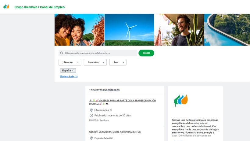 La compañía eléctrica Iberdrola ha publicado nuevas vacantes en su página de empleo. En total, hay 17 ofertas de trabajo localizadas en España, algunas de ellas con más de un puesto y para ocupar diferentes cargos dentro de la empresa. Así, hacen falta profesionales para la transformación digital en varias ciudades, pero también expertos en ciberseguridad, gestores de contratos de arrendamientos o técnicos de liquidaciones y estudios en mercados mayoristas.
