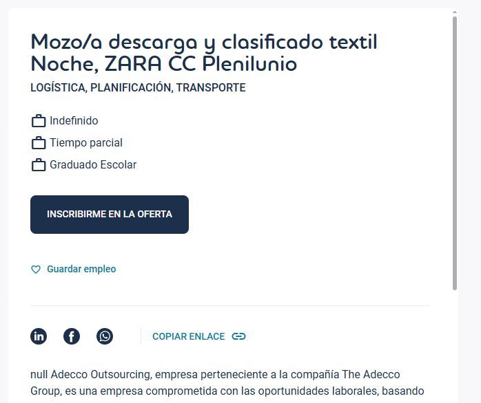 Mozo/a descarga y clasificado textil Noche, en el Zara del CC Plenilunio (Madrid)