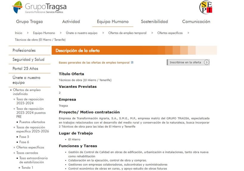 Ver más detalles en la convocatoria en el portal de Tragsa.