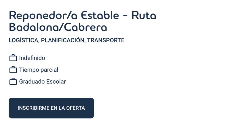 Adecco Outsourcing incorpora dos reponedores/as para trabajar en centros comerciales de Badalona y Cabrera. Para optar al puesto, se requiere experiencia en reposición o merchandising, disponibilidad en horario de 13:00 a 20:00 y residencia en la zona o alrededores.