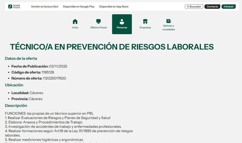 Es posible ver esta oferta y más en el portal de empleo de la Junta de Extremadura (SEXPE).