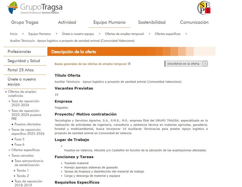 Tragsa publica hasta 10 plazas para trabajar en este proyecto en Valencia.