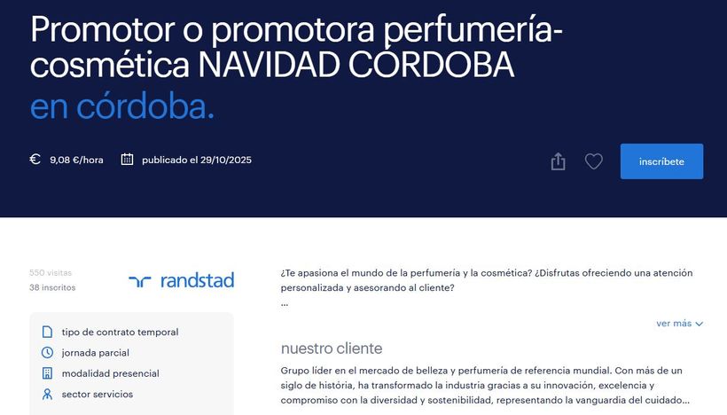 Necesitan Promotor/a de perfumería - Cosmética para la campaña de Navidad en Córdoba.