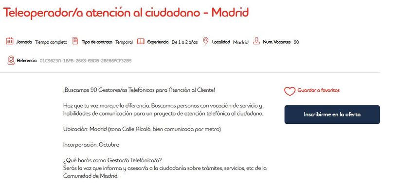 Se abre un gran proceso de selección en el que buscan Teleoperadores de atención al ciudadano en Madrid.