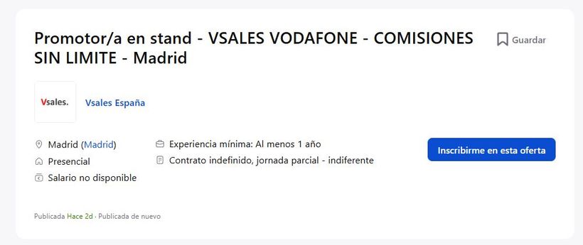 Buscan a un Promotor/a en stand para VSales / Vodafone en Madrid.