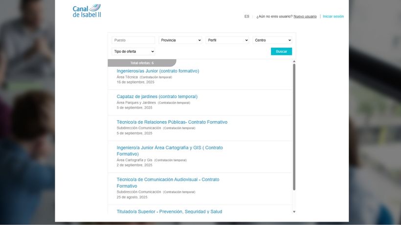 Para optar a una de estas vacantesm, habrá que entrar en la página de empleo del Canal de Isabel II y filtrar por ‘Ofertas con contrato temporal’ ya que las demás son de empleo público.