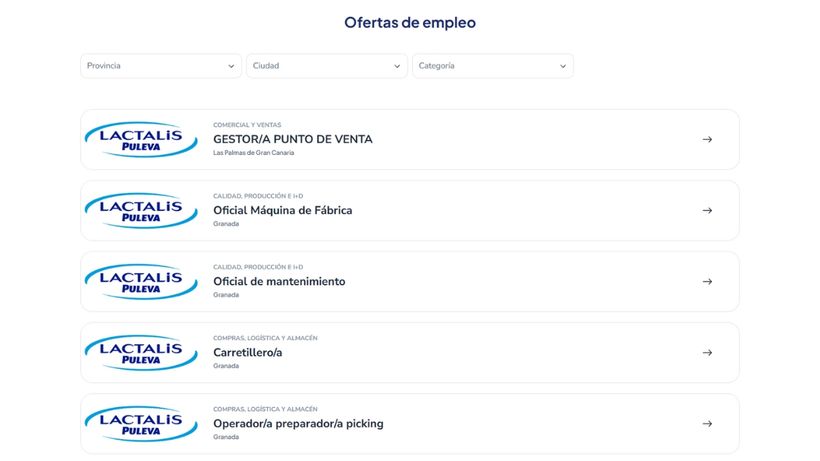 Lactalis Puleva tiene nuevas ofertas de empleo para trabajar en diferentes departamentos, ubicadas en su mayoría en la ciudad de Granada, donde está la sede central de la empresa láctea. Entre otros puestos, que ya se pueden consultar en su web, en Lactalis Puleva necesitan incorporar: