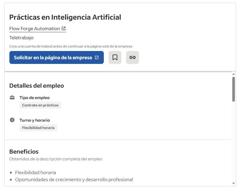 Flow Forge Automation publica un puesto en modalidad teletrabajo, formación práctica en IA.