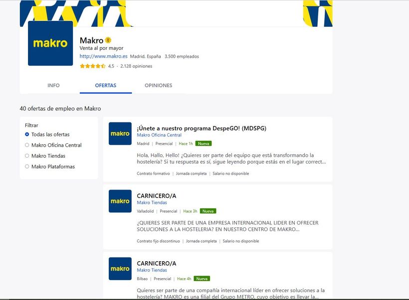 Makro abre una gran bolsa de empleo con 40 ofertas de trabajo publicadas en el portal InfoJobs.