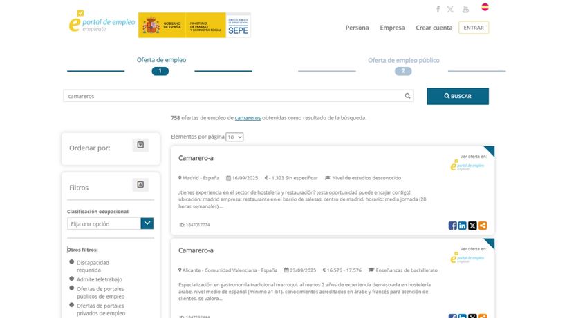 Para apuntarse a estas y a las demás vacantes, habrá que entrar en la web del Servicio Público de Empleo Estatal, escribir ‘camarero’ en la barra de búsqueda y pinchar sobre la que se esté interesado.