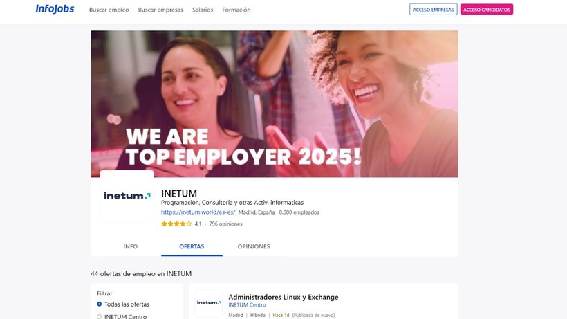 Infojobs publica las ofertas de empleo de la empresa Inetum, de programación, consultoría y otras actividades informáticas, con 44 nuevas vacantes. Estas se encuentran localizadas en las sedes que la empresa tiene en el centro, levante, norte, sur y Cataluña. Necesitan profesionales especializados en administración, soporte informático, desarrolladores o expertos en inteligencia artificial.