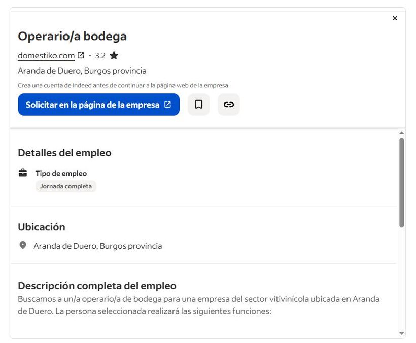 El puesto es para trabajar en Aranda de Duero, provincia de Burgos.