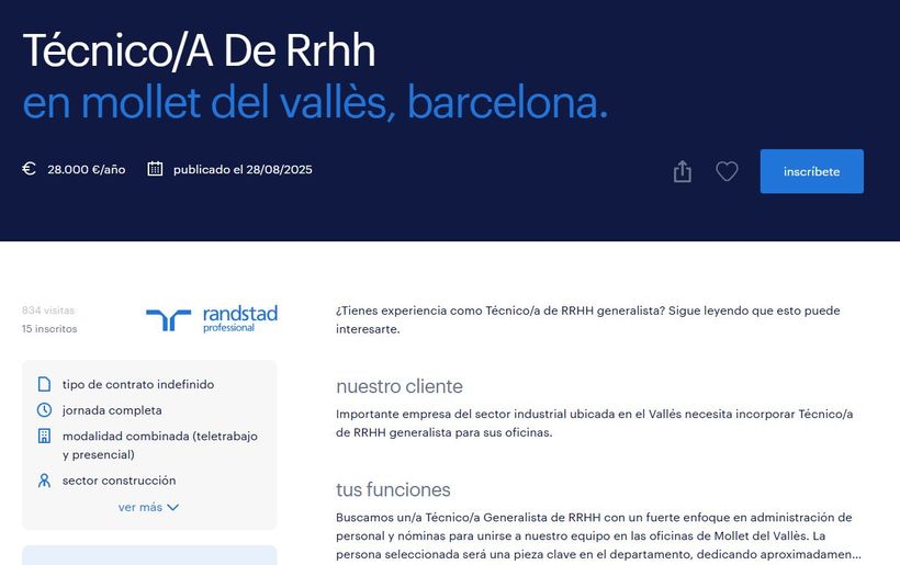 Por su parte, los requisitos son: ser estudiante universitario en áreas de Psicología, Recursos Humanos, Administración de Empresas, o afines, tener capacidad para trabajar bajo presión y cumplir con plazos, tener actitud proactiva, organizada y con ganas de aprender, dominio de Microsoft Office (Word, Excel, PowerPoint) y es deseable saber inglés. Las candidaturas se pueden realizar a través de Infojobs.