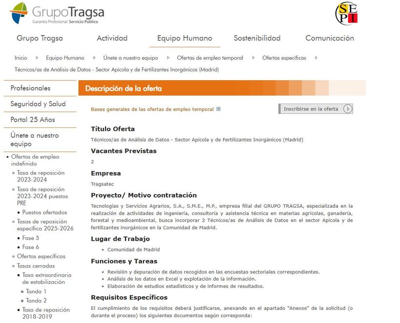 2 Técnicos de Análisis de Datos para el Sector Apícola y de Fertilizantes Inorgánicos en Madrid.