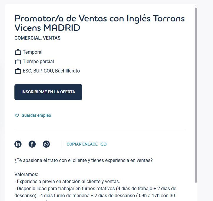 Promotor/a de Ventas con Inglés en Torrons Vicens, MADRID.