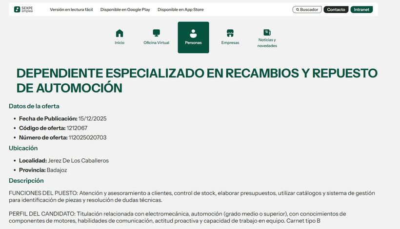 El empleo es en Jerez de los Caballeros (Badajoz).