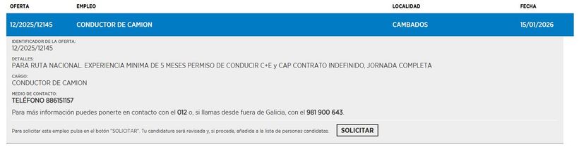 Ver esta oferta e inscribirse en el portal de empleo de la Xunta de Galicia ('Emprego Galicia').