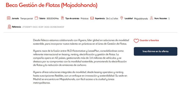 Nueva Beca en Gestión de Flotas (Majadahonda, Madrid).