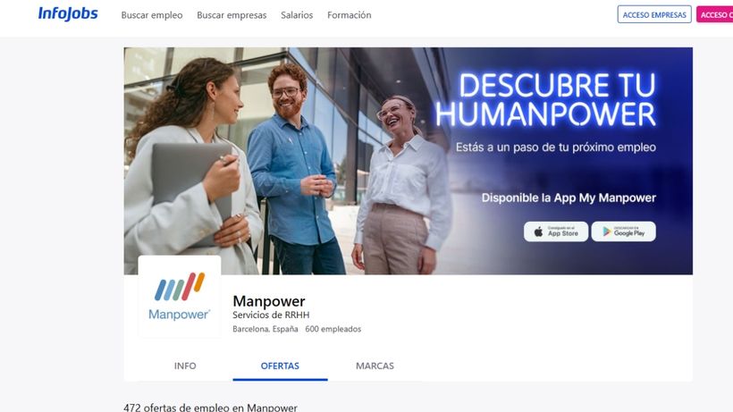La empresa de Recursos Humanos Manpower ha publicado en Infojobs un proceso de selección de personal con 472 ofertas de trabajo en distintos puntos y empresas de España. Entre ellas, se neecsitan profesionales de mantenimiento en Valladolid, operario de viguetas paras trabajar 3 días a la semana en Ontiyent, operario SAT en Alginet, carretillero frontal en Velilla de San Antonio o Repartidor en Murcia.