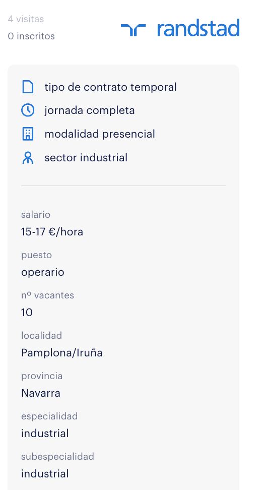 Randstad ha publicado una oferta de empleo para incorporar a 10 operarios y operarias del sector eólico en una empresa ubicada en Lumbier (Navarra).