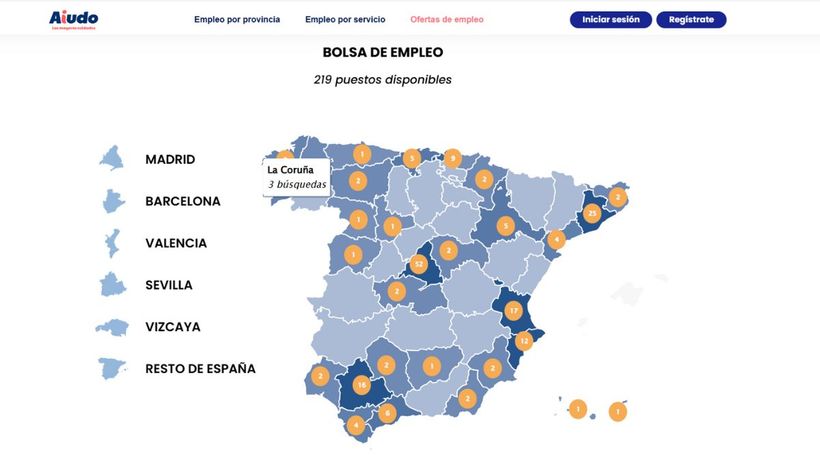 La bolsa de empleo de Aiudo está activa este 2 de octubre con 219 puestos disponibles. Por Comunidades Autónomas destaca Madrid con 52 vacantes seguida de Barcelona con 25 y Sevilla con 16. Hay oportunidades para personal interno y externo en horario de mañana, tardes o fines de semana. Los sueldos varían en función del tiempo de trabajo pero se puede llegar a cobrar más de 1.500 euros.