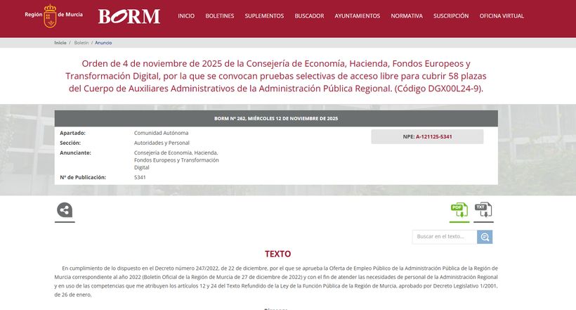 La Consejería de Economía, Hacienda, Fondos Europeos y Transformación Digital ha publicado una convocatoria de oposiciones con 58 plazas de las que 52 son libres y 6 para personas con discapacidad general, para auxiliares administrativos que serán funcionarios de carrera.