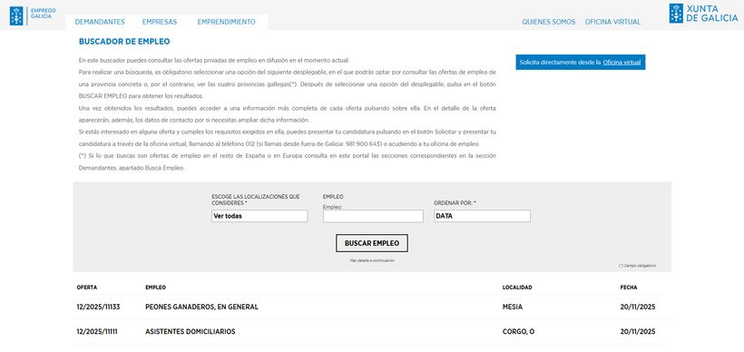 Inscribirse en las vacantes es sencillo y habrá que entrar en la web de Emprego de la Xunta de Galicia y pinchar sobre el nombre.