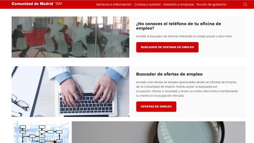 La Comunidad de Madrid, a través de la oficina virtual de empleo, publica nuevas vacantes en diferentes sectores profesionales. Estas, se encuentran repartidas por localidades como Coslada, Fuenlabrada o Getafe, aunque también hay disponibles en varios distritos madrileños. Para postular a una de ellas es necesario estar dado de alta en la oficina de empleo que corresponda.