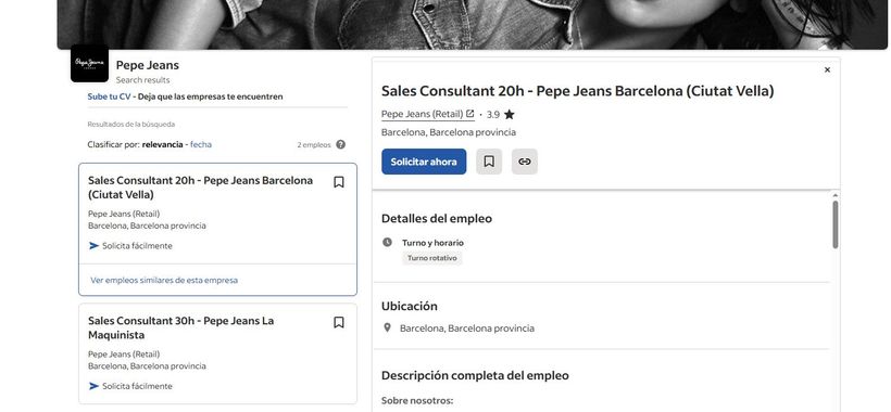 Pepe Jeans contrata Sales Consultant para su tienda en Ciutat Vella (Barcelona).