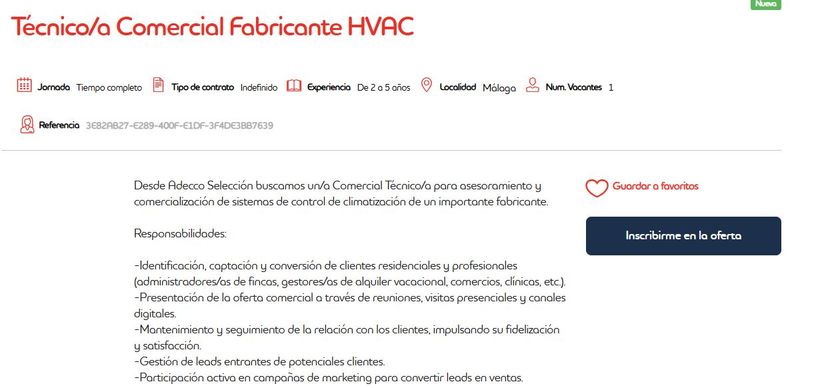 Buscan a alguien que tenga un perfil técnico-comercial de climatización.
