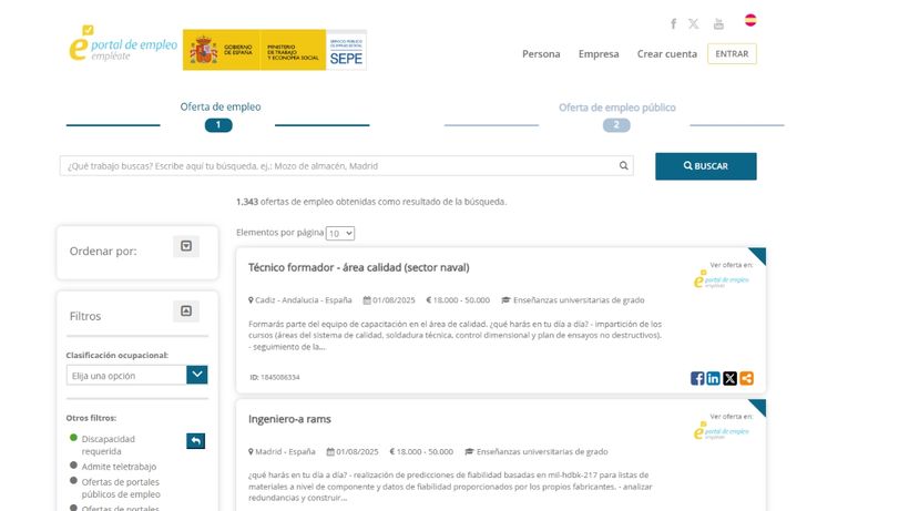 Todas las ofertas de empleo están en ‘Empléate’, la web laboral del SEPE usando el marcador de ‘discapacidad requerida’.