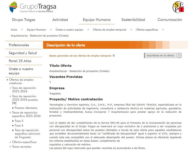 Ver la oferta en Tragsa.