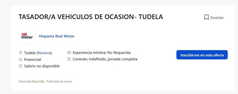 Necesitan a un Tasador/a de Vehículos de Ocasión.