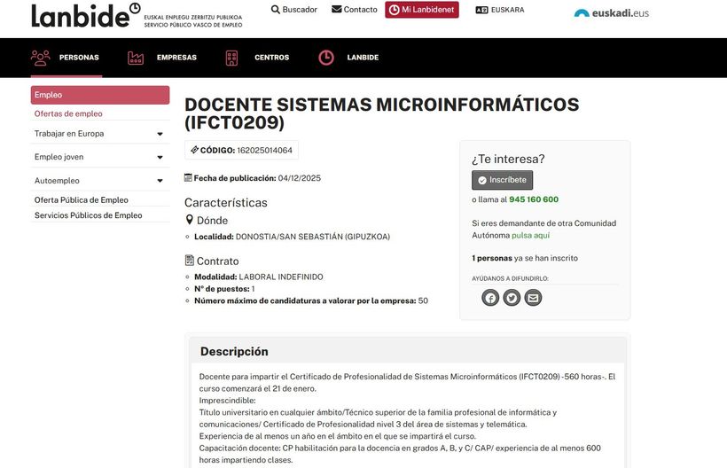 Accede a esta oferta desde el portal de empleo del País Vasco (Lanbide).
